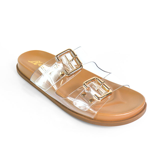 The perfect flat clear sandal! Easy to match absolutely anything all season long.